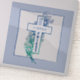 Les désirs d'un prêtre viennent en vie avec ce cadeau bleu avec la croix qui coule avec des fleurs. Entièrement personnalisable.