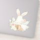 Fleurs pastel et lapin adorables dans un autocollant de panier.