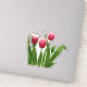 Fleurs de tulipe rouge avec autocollant de baiser vert.
