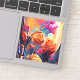 Sticker Floral Abstract Art Orange Red Blue Flowers