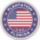 Plantation Florida, sticker de plantation avec drapeau américain, forme arrondie. Villes de la collection Florida
