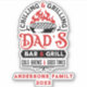 Fraiser et griller Papa's Bar and Grill- brasseries froides et bons temps- conception de typographie vintage noir et rouge avec un texte personnalisable en rouge pour personnaliser la célébration de la fête des pères de cette année.