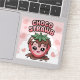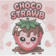 Un nouveau design de personnage de dessin animé mignon. Un personnage de fraise superbement kawaii est conçu, recouvert de chocolat fondu qui coule du haut, avec quelques cœurs roses mignons en arrière-plan. Une belle typographie présentant la phrase "FRAISE CHOCOLAT" est ajoutée dans une police et un style parfaits.
