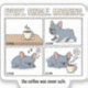 Un design humoristique de style bande dessinée montrant comment un café matinal paisible se transforme en chaos grâce à un Frenchie qui ronfle. Parfait pour les amateurs de chiens et les fans de café.