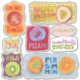 Choix sain amusant et coloré, autocollants de fruits biologiques
