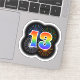 Cette conception amusante et excitante d'autocollants comporte un motif coloré inspiré par des feux d'artifice festifs éclatants, ainsi que le numéro "13" ayant un arc-en-ciel multicolore comme spectre ou motif dégradé. Un autocollant excitant comme celui-ci peut être amusant à utiliser pour célébrer le treizième anniversaire de quelqu’un, ou peut-être le treizième anniversaire de mariage d’un couple, ou un autre 13e événement. [~Z0000362]