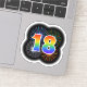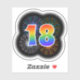 Ce design amusant et passionnant d'autocollants présente un motif coloré éclatant feux d'artifice inspiré, ainsi que le numéro "18" avec un spectre multicolore d'inspiration arc-en-ciel ou motif dégradé. Un autocollant comme celui-ci peut être amusant à utiliser pour célébrer le dix-huitième anniversaire de quelqu’un, ou peut-être le dix-huitième anniversaire de mariage d’un couple, ou un autre 18e événement. [~Z0000362]