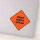 Un panneau classique orange de prudence en diamant avertit du travail acharné devant une police sans serif noire épaisse. Un jeu de jeu de mots sur les mots d'un signe classique, le travail sur la route à venir, parfait pour les livres scolaires, les journaux, le comité de vision.