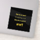 A witty, minimalist parody of a protest chant that humorously nods to a vintage television game show, using bold yellow text on a black background to deliver a punchline with perfect comedic timing.