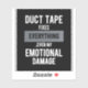 This sticker is perfect for emotionally damaged guys who haven't lost their sense of humor yet. All you need is a little bit of duct tape, and you'll be good to go! A great way to show off your self deprecating, dry humor style. Perfect for your cooler, tool box, laptop and more! Multiple sizes available.