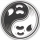 Symbole Yin Yang fait de deux fantômes éffrayants en noir et blanc contrasté. Mots clés : équilibre, chinois, contraste, fantôme, halloween, symbole, yang, yin, yin yang, yinyang