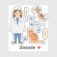 Sticker Girl Veterinarian With Puppy Cat And Vet Things