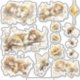 ✧ ✧ ✧ A small golden world comes to life in this illustrated sheet of sleeping honey fairies, inspired by a gentle and luminous fantasy universe. Soft creatures wrapped in golden honeycombs, transparent wings, and amber-toned flowers rest among branches and petals, as if time had paused inside the heart of the enchanted forest.
