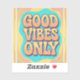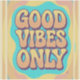 Fun quote text groovy 70s style typography with text good vibes only design.