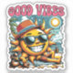 Cet autocollant est imprimé à l'ancienne d'un homme avec un soleil pour une tête à la plage, avec l'expression "Good Vibes". C'est parfait pour les aventures d'été.