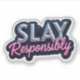 Ajoutez un peu de charme à votre ordinateur portable, à votre planificateur ou à votre bouteille d'eau avec cet autocollant Slay Responbly audacieux. Doté de lettrage métallique rétro amusant sur un arrière - plan étoilé, ce design apparaît sur n'importe quelle surface. Imprimé sur un matériau durable et de haute qualité qui est parfait pour une utilisation quotidienne. Idéal pour donner à votre patron préféré bimbo, créatif, ou amant autocollant. Epluchez votre style tout en le gardant élégant.