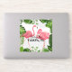 Greetings from Tampa, Florida, tropical design with palm fronds and pretty pink flamingos.