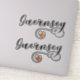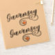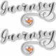 Conception de police par script autocollants personnalisés baiser-coupe (2 sur une feuille). Drapeau de Guernesey dans un coeur, avec police scriptée.