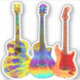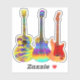 Guitare électrique psychédélique et guitare semi-acoustique et autocollants d'illustration de guitare acoustique dans des couleurs vives et vibrantes. N'importe quel guitariste ou musicien va adorer ces guitares pop art colorées amusantes en célébrant l'énergie musicale et la variété de cet instrument musical merveilleux. Le cadeau idéal pour les joueurs de guitare et les amateurs de musique. OEuvre originale de l'artiste Catherine Sweetman