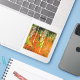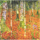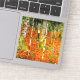 Autocollant reprenant le tableau de Gustav Klimt Fermes aux bouleaux (1903). Un paysage automnal aux feuilles orange dans une forêt de bouleaux avec de magnifiques fleurs bleues. Un merveilleux cadeau pour les amateurs d'Art nouveau et d'art autrichien.