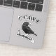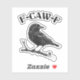 Il s'agit d'une illustration monochromatique de fabrication professionnelle, avec un corbeau perché sur une branche d'arbre, rendu avec une texture mi-teinte distincte pour évoquer une esthétique vintage. Le texte audacieux et stylisé "F-CAW-F", qui est placé en bonne place au-dessus de l'oiseau, offre une touche humoristique qui complète la veine gothique et potentiellement éffrayante ou Halloween du corbeau. La composition globale mêle des éléments de tatouage vintages et foncés avec un design graphique rétro.