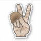 * Camouflage military pattern in hand peace sign with helmet over the fingers.