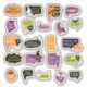 Des autocollants d'Halloween éffrayants et amusants, avec une sorcière, un chat noir, une araignée, une toile d'araignée, une chauve-souris, un citrouille, un crâne et des os croisés.