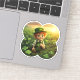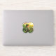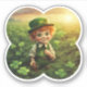 Autocollant de la Saint Patrick. Lucky leprechaun Assis au milieu d'un champ de trèfle.