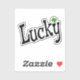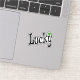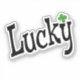 Le mot Lucky dans une police amusante avec un petit trèfle vert à quatre feuilles.