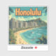 Explorez la beauté d'Hawaii avec cette image vectorielle vibrante et détaillée d'Honolulu. Ce poster de voyage présente une magnifique scène de plage avec des gens qui apprécient le sable et le surf, entourés de palmiers, de gratte-ciel et d'un paysage urbain animé. Parfait pour les amateurs de paysages urbains et de escapades tropicales, cette affiche capture l'essence du charme unique et de la vie insulaire d'Honolulu.