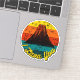 Je vous lave un autocollant amusant pour montrer à quelqu'un qui vous intéresse. Volcan au coucher du soleil rétro des années 70.