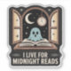 Pour les lecteurs nocturnes et les amateurs d'horreur douillets. Cette conception montre un rebord de fenêtre clair de lune avec un livre ouvert et un minuscule fantôme lisant tranquillement à minuit. Les accents crème et or doux donnent une ambiance chaleureuse et éffrayante, idéale pour les clubs de livres, les stylos à livres ou la saison d'Halloween. Portez-le à votre prochaine lecture.
