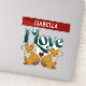 I Love Foxes cite. Montrez votre amour des renards avec cette illustration à la main mignonne et fantaisiste. Personnalisez le nom et créez un cadeau amusant et spécial. —>> NOTE : Cette feuille contient deux (2) autocollants distincts. Seul le nom dans la bande rose peut être changé. Les mots "I Love" ne peuvent pas être modifiés.