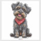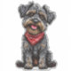 Dessin à la caricature adorable d'un petit chien heureux portant un bandana rouge. Représentation parfaite d'un animal de compagnie joyeux plein de caractère, invitant sourires et joie avec son apparence expressive et ludique.