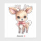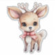 Collier autocollant avec l'illustration d'un adorable cerf de bébé. Grands yeux grands oreilles avec une grande tête et des petits bois bruns. Portant un gros arc rouge.