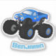 Ce mignon camion monstre bleu est prêt pour l'action de course. Camionneur de course haute octane amusant dessiné dans le style de dessin animé heureux!