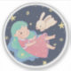 Une jolie illustration d'une fille et un lapin dans le ciel étoilé