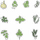 Illustrations d'aliments botaniques dessinés à la main des herbes communes du jardin de la cuisine, y compris le romarin, le thym, la feuille de baie, l'ail, le basilic, la coriandre, la menthe, le persil et la sauge
