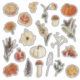 Ensemble de photos d'automne mignonnes dessinées à la main : citrouille, champignons, feuilles, fleurs, etc.
