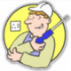 Idéal pour une entreprise électrique. Image électricien en couleur. Sticker avec photo d'un électricien.