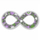 Montre ta double fierté ! Le symbole de l'infini représente toutes les formes de neurodiversité, y compris l'autisme et le TDAH. Ce joyeux symbole à l'infini est rempli de coeurs, d'étoiles, d'arcs-en-ciel, de visages souriants et de pois, colorés dans les couleurs du drapeau de la Genderqueer Pride, neutre pour le genre, de lavande violet, blanc et vert chartreuse. La texture glittère lui donne cette étincelle unique — comme vous !