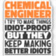 Drôle Ingénieur Chimique Dit "Ingénieur Chimique J'Essaie De Faire Des Choses Idiot Preuve Mais Ils Continuent À Faire De Meilleurs Idiots". Prenez ce dessin drôle ingénieur chimique comme un cadeau amusant pour une maman, un père ou un ami génial.