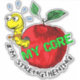 Autocollant de pomme envahisseur. "Je suis en train de renforcer mon coeur". Pun, joue sur les mots. Mignonne ver levant poids.