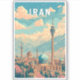 Iran retro vector travel design. Iran is a land of ancient history, vibrant culture, and stunning architecture, offering travelers a journey through bustling bazaars, ornate mosques, and vast desert landscapes.