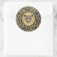 Autocollant rond avec l'image d'une tête en jaguar or et diamant sur or brossé avec une bordure noire sur un arrière - plan d'empreinte de léopard. Voir l'affranchissement correspondant. Voir l'ensemble de la collection Gemstones & Medallions Sticker dans la section CARDS, POSTCARDS & STICKERS.