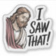 Cet autocollant humoristique présente une image classique de Jésus avec la légende "J'ai vu ça !" Ajoutez une touche d'humour divin à votre ordinateur portable, bouteille d'eau, voiture ou toute autre surface qui a besoin d'un peu de surveillance céleste. Parfait pour ceux qui apprécient l'humour religieux et veulent partager un message léger avec le monde. Cet autocollant vinyle durable est résistant aux intempéries et conçu pour durer.