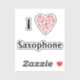 Sticker J'aime le Saxophone Cœur Rouge de Notes de Musique
