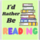 J'aime mieux lire. Avec des lettres colorées, sur fond vert, et une pile de livres !