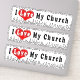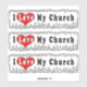 Un autocollant que vous pouvez ajouter à tout ce que vous souhaitez. Cette conception montre un contour de "gens" qui représente une congrégation de chuch. A les mots "I Love My Church" avec le mot "love" enfermé dans un coeur rouge. Stick l'autocollant avec ce design dessus pour montrer fièrement que vous aimez votre famille d'église.
