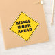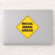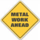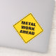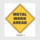 Drôle classique losange de prudence de route avertit de travail en métal devant dans une police noire sans serif épaisse, qui est un signal d'avertissement pour le panneau de travail routier qui sera à venir prochaine.